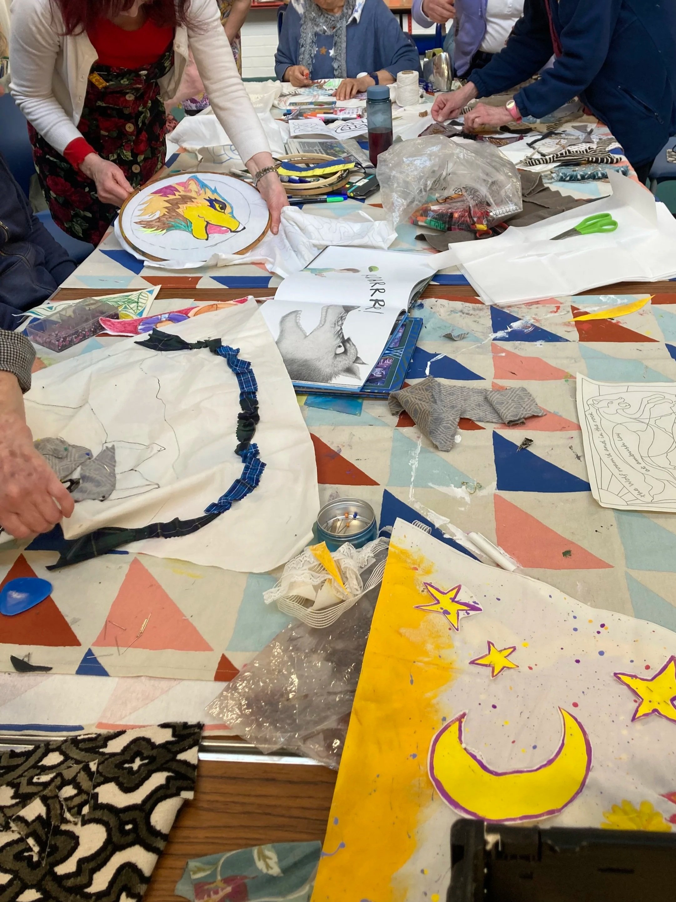 Thanks to Scene Stirling funding, members of the local area have been able to join artist-led workshops at St Ninians Library, guided by Art Inclusion artists Amy Crawley‑Wise and Audrey McMenemy. Individuals and participating library groups have worked together to design and create large-scale banners that will feature prominently in the town centre celebrations on 1 May.